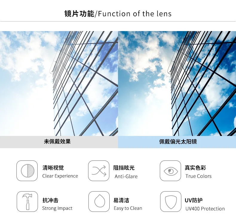 Polarized Sunglasses Function: anti-glare, anti-vertigo